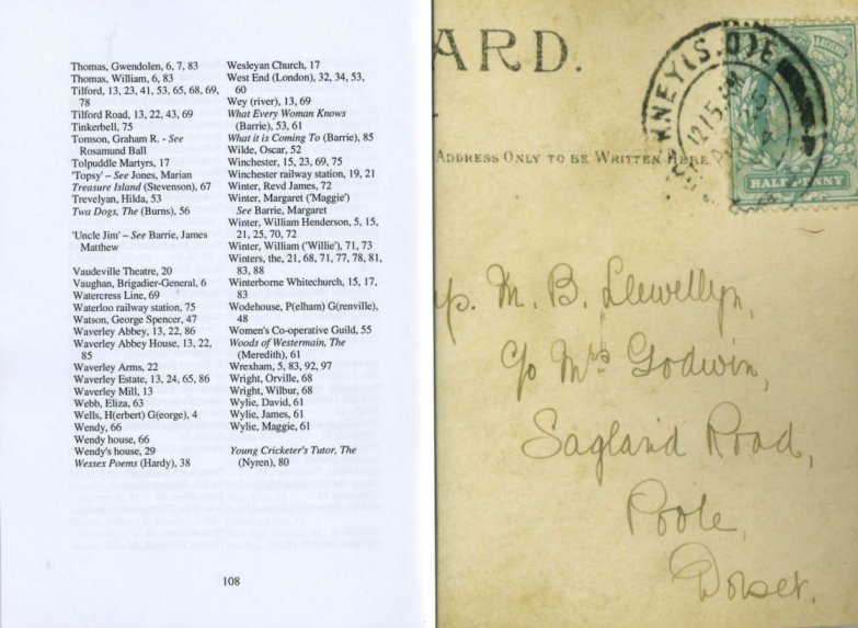 Troisième de couverture. Moitié de la carte postale qui donne son très beau titre au livre, adressée à Mabel et expédié par "Fred"...