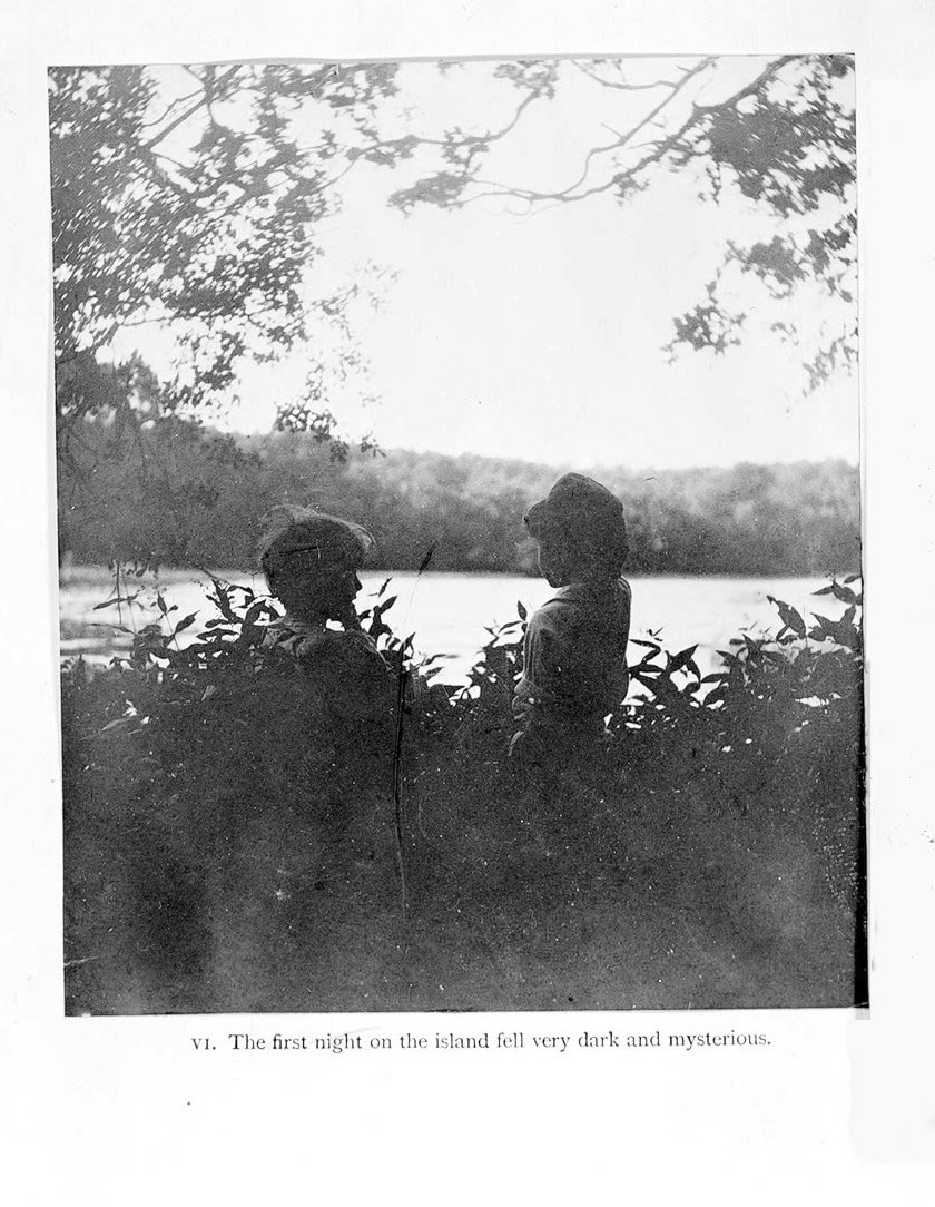 Les naufragés [Toutes ses images ont été fournies par le site de la Beinecke Library.] Dans le chapitre XXIII du Petit oiseau blanc, le Capitaine W. relate de semblables aventures... "Récit des terribles aventures des frères Davies pendant l’été 1901 rapporté fidèlement par Peter Llewelyn Davies. " Dédicace : A notre mère, un hommage sincère, en souvenir de ses efforts afin de nous élever au-dessus de l'état des barbares.